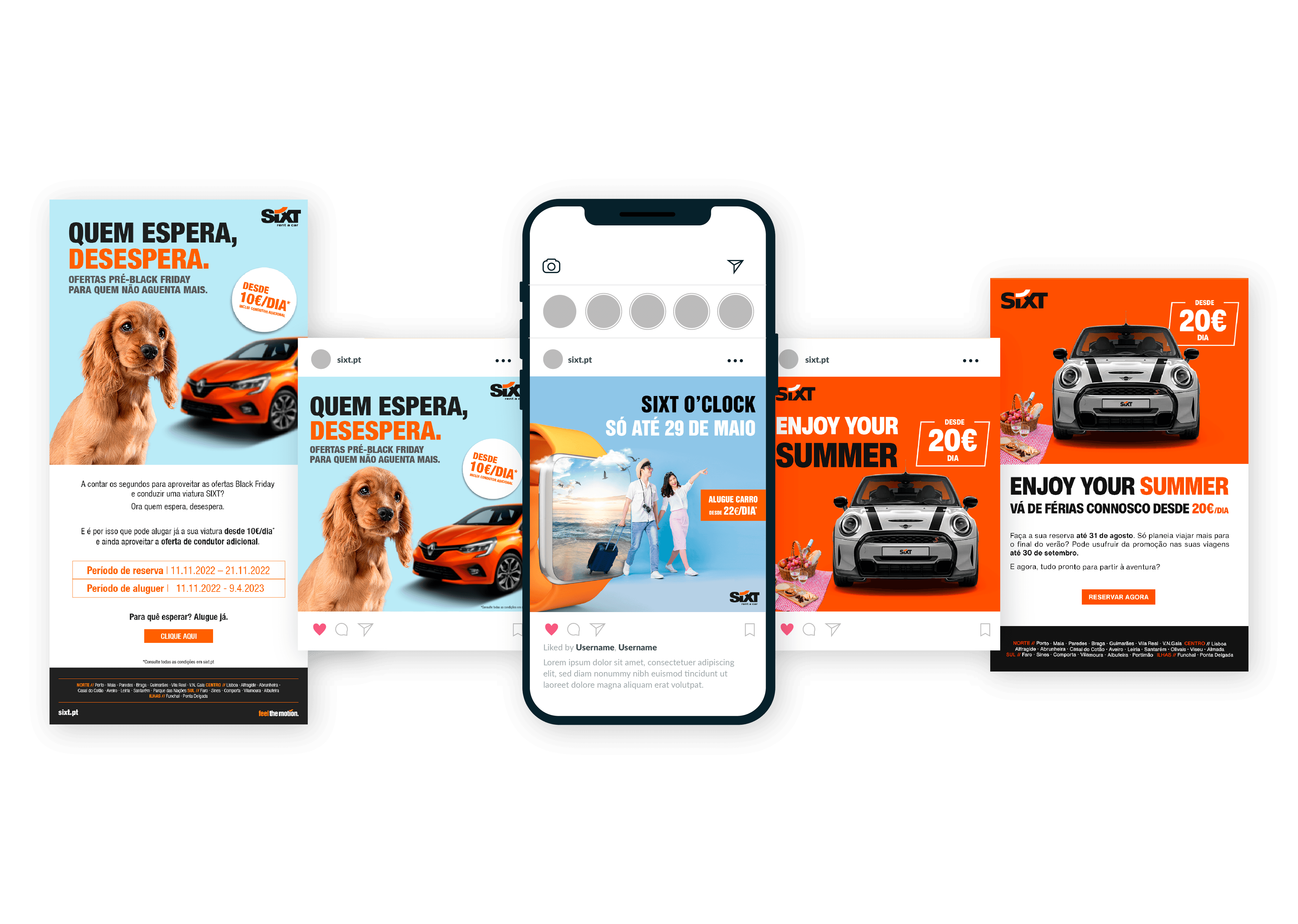 Over the years working with SIXT, the brand went through a visual and strategic transformation that required a new communication approach. From seasonal campaigns to corporate events, I developed a wide range of materials across print, digital, and video formats, always adapting to the updated brand guidelines. A consistent and versatile body of work that strengthened the brand’s presence across different channels.
